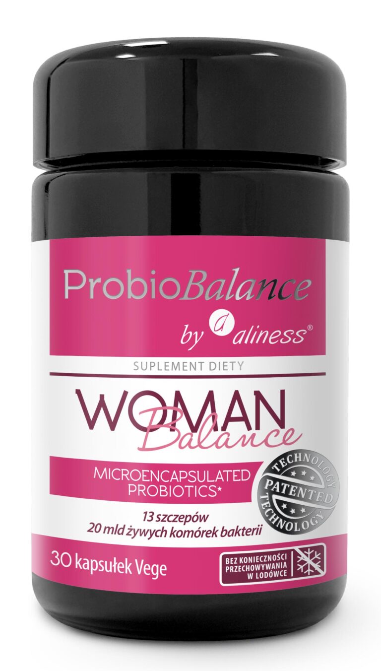 ProbioBalance Woman Balance to suplement diety opracowany z myślą o kobietach, zawierający 14 specjalnie wyselekcjonowanych szczepów bakterii probiotycznych oraz prebiotyk Fibregum™ Bio LAW (aw < 0,2%) i ekstrakt z babki lancetowatej.