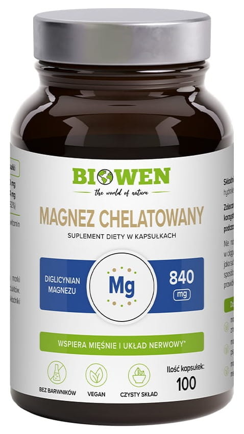 Biowen Magnez Chelatowany Diglicynian magnezu 100 kaps skurcze mięsnie