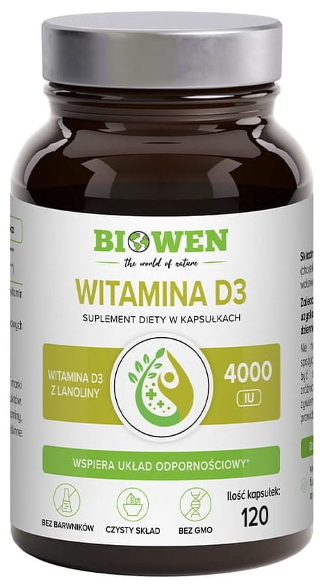 Witamina D3 z lanoliny od Biowen - 120 kapsułek